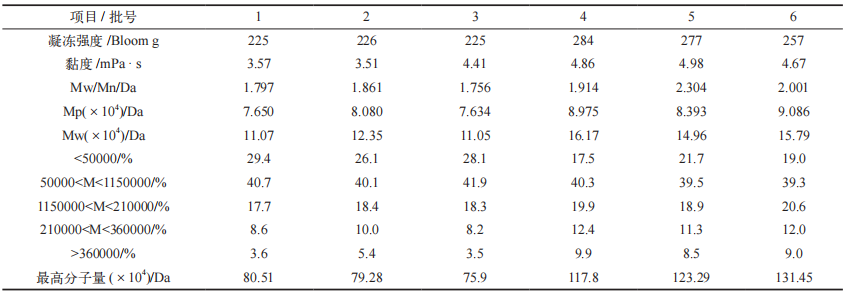 [7] 张兵,等. 酸法明胶、碱法明胶及酶法明胶的分子量分布分析[J]. 明胶科学与技术,2012,32(4):180-189.