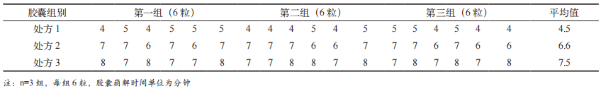 表2 不同处方明胶空心胶囊的崩解时间