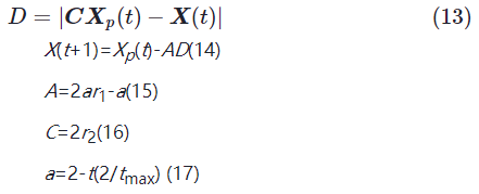步骤1 狼群对猎物进行包围,包围过程如式(13)~式(17)所示。