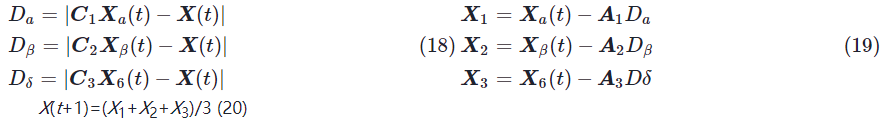 fα(t),fβ(t),fδ(t)——α,β,δ个体适应度值。