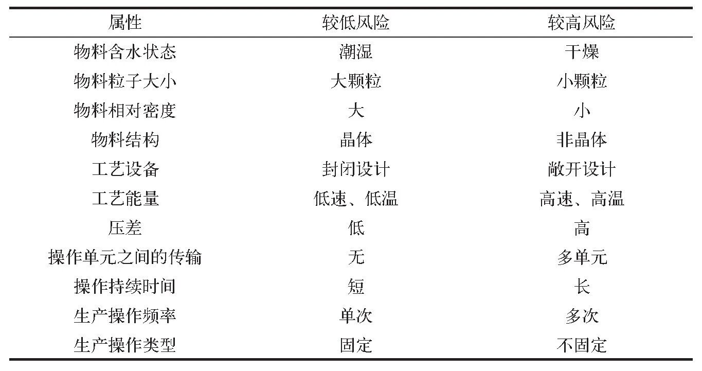 (4)根据危害物料的危害严重性,设置最低暴露极限并设计出安全操作流程。通常根据生产工艺建立标准操作规格并针对性的设置防护方法。表1为影响暴露的物料及工艺因素。
