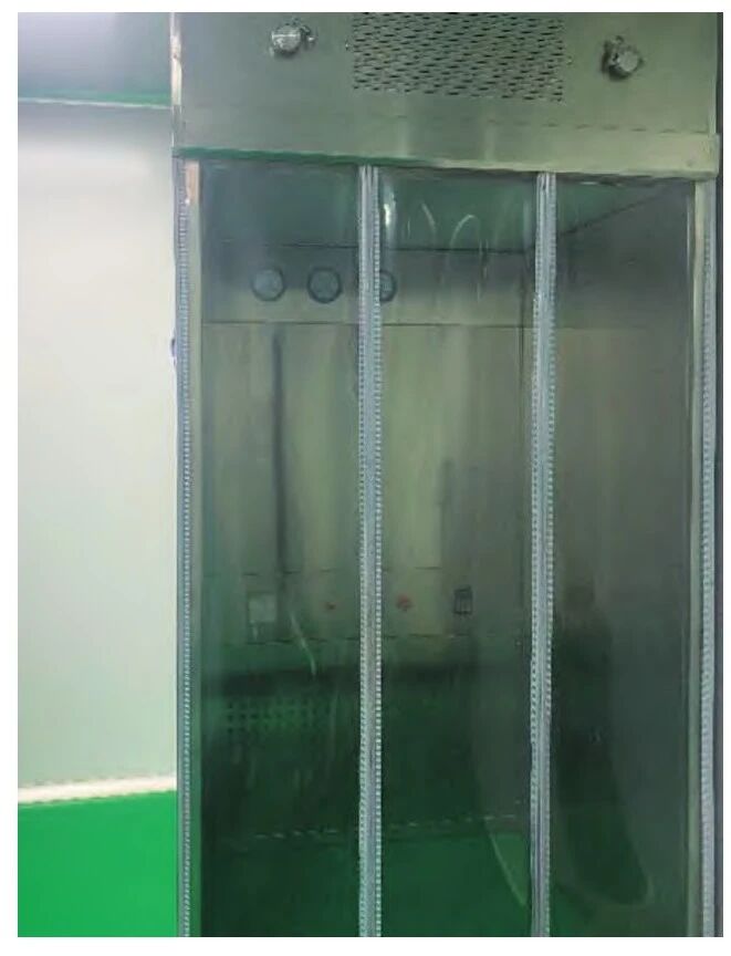 通风系统为利用气流原理将操作间内的污染物进行排出,一般分为总体直排式通风系统和局部排风单元。总体直排式通风系统为从进风单元提供大量符合条件的洁净空气,将房间内的污染物从排风口处排出;局部排风单元为在工艺设备上设置风罩,通过除尘装置(如脉冲除尘器,通风橱等)将局部的污染物捕获或设置负压称量罩装置控制工作区内的粉尘。以山东天振药业有限公司生产中使用的除尘装置为例,图1为散剂车间分装岗使用的脉冲除尘器,图2为实验室理化岗使用的通风橱装置,图3为片剂车间配料岗使用的负压称量罩装置。