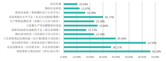 2.1模具调试、清洁维护与设备故障是三大瓶颈