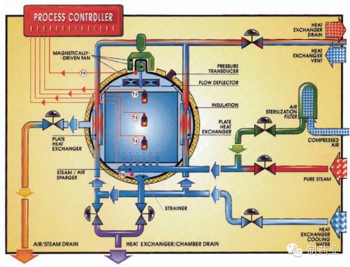 和”产品容器内外压差,须实时监控产品容器内温度,通过自控系统换算成压力,及时向灭菌器内注入适量经无菌过滤的压缩空气或排放适量机内空气,务必使产品容器内外压力均等,整个灭菌过程不破坏产品。(如图 2)