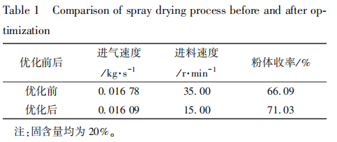 表 1 喷雾干燥工艺调优前后对比