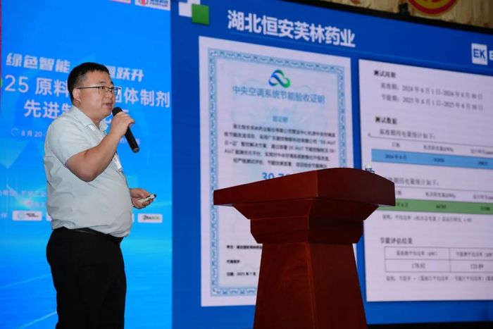 广东欧科空调制冷有限公司产品经理徐枫林介绍了高效集成冷站技术在制药行业绿色转型中的创新应用,重点分享了通过模块化设计、智能控制及废热回收技术,优化原料药和固体制剂生产中的制冷系统,助力企业降低能耗30%以上。