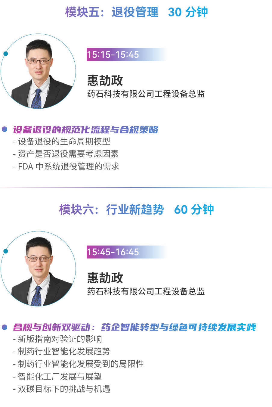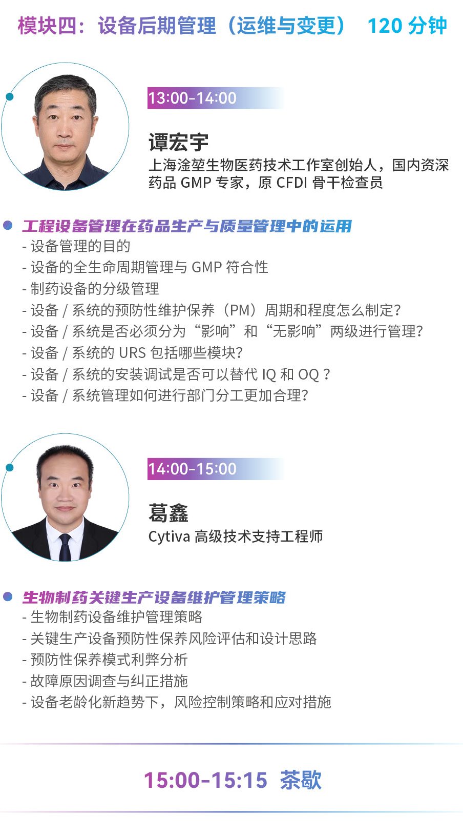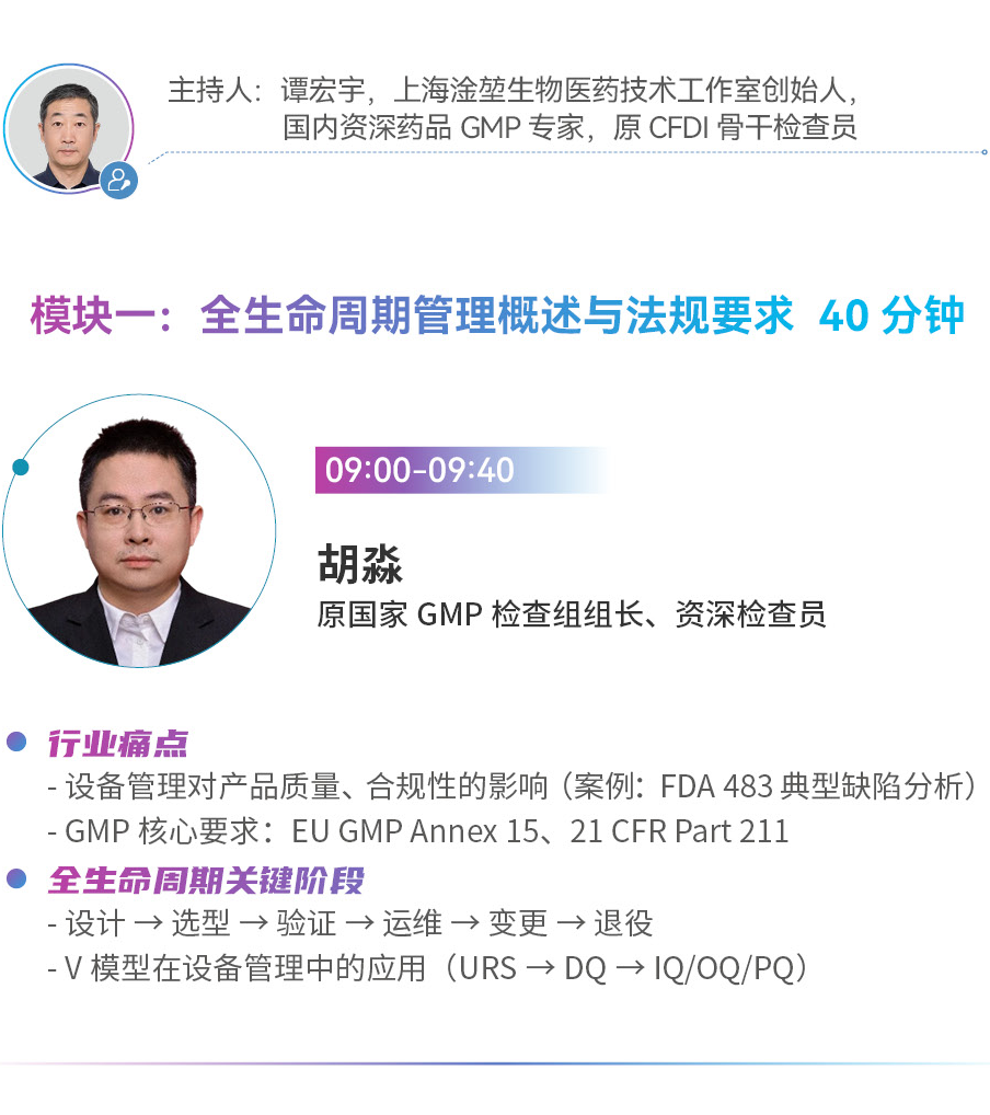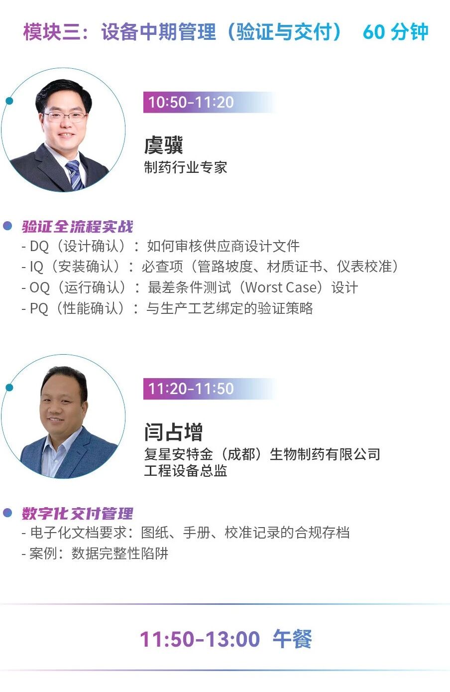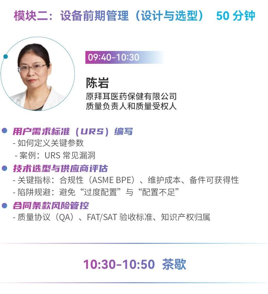 为助力制药企业相关专业人员全面提升设备管理能力,深入掌握设备全生命周期管理的专业知识与实战方法,PharmaTEC制药业联合中国化工企业管理协会医药化工专委会,并特邀Cytiva作为合作伙伴,共同组织业内资深专家,于2025年9月19日在“2025弗戈制药工程国际论坛”期间举办“生产设备从设计选型到退役处置的全流程全生命周期管理培训班”。欢迎制药行业相关人员报名参与。