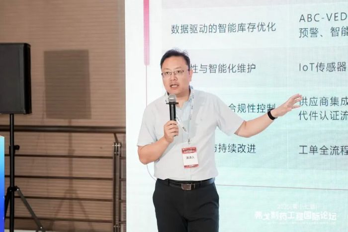 丹瑞生物厂长许文铂以《AI技术在药品GMP新版无菌附录中的应用及展望》为题,全面剖析了人工智能技术在制药领域的应用前景。他从AI的应用领域入手,系统介绍了在数据合规、设备维护、质量控制和药物研发与评审等方面的具体应用场景。许厂长还特别分享了对于GMP无菌附录在AI技术应用方面的设想,并客观分析了当前AI技术在药品领域应用所面临的数据壁垒、技术成熟度、法规合规等挑战,同时对未来发展趋势进行了展望,为行业拥抱人工智能技术提供了战略思考。