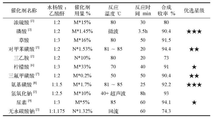 图1浓硫酸催化合成乙酰水杨酸的化学反应式