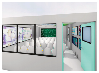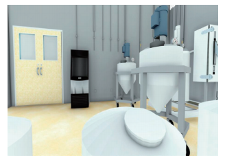 对审核后的 SketchUp 模型需继续采用 Lumion 渲染软件进行后期渲染,以进一步确认仿真效果,这是其他空间设计所不具备的步骤。在此过程中,可进一步确认各类配色搭配及设施造型等艺术化美观细节。如图 2 所示为项目中一个制剂线房间的仿真模拟效果,图 3 则为项目内培训房间的仿真模拟效果图。