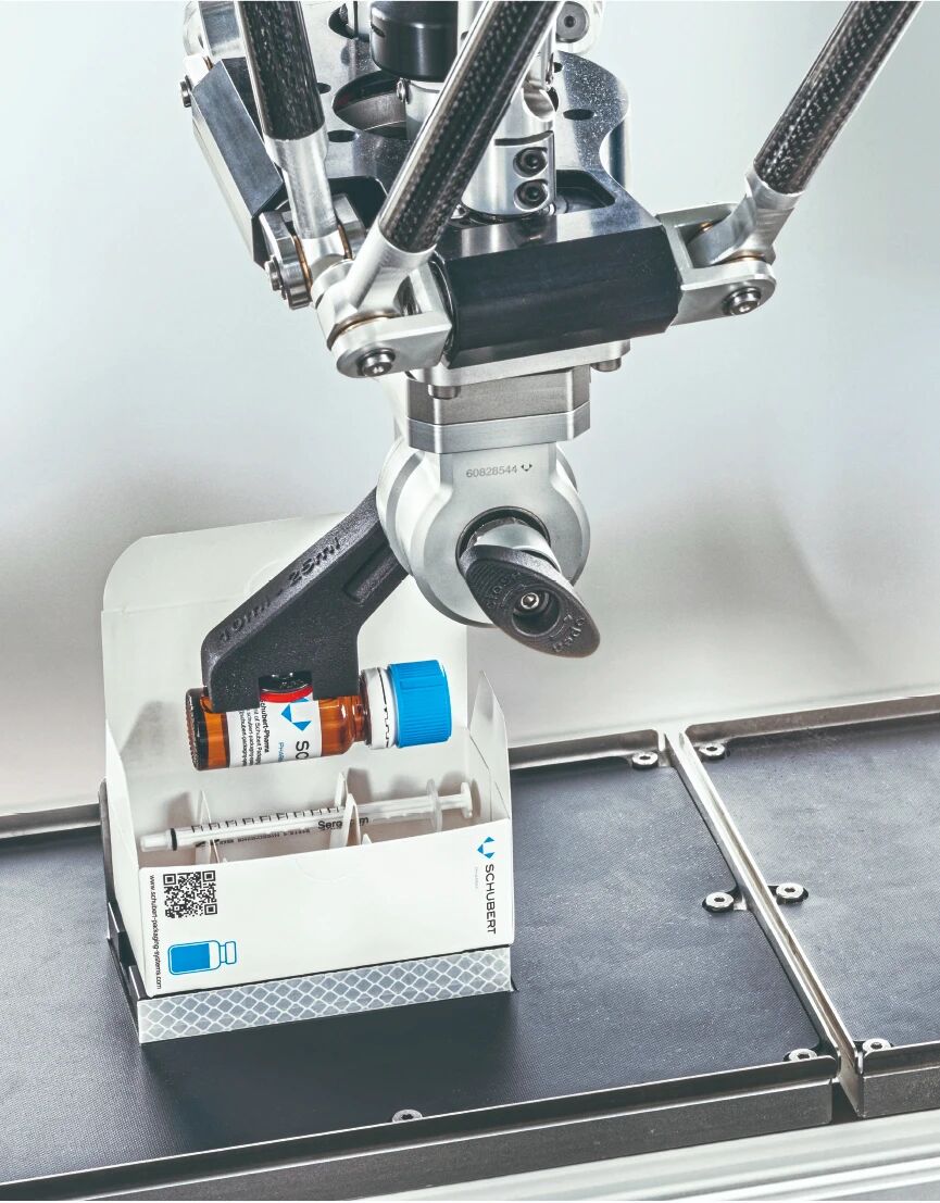 若需求量超过约 300 万 件,Schubert 将值得考虑将包装工艺升级为全自动解决方案。为此,Schubert 提供了模块化顶部装载包装机(TLM),该设备可根据具体要求和应用场景,从制造商的模块化系统中灵活组装。由于包装设计在临床 III 期阶段便已与机器兼容,TLM 系统在启动阶段即可投入生产。这不仅有效避免了生产规模扩大过程中的中断,还使药品生产商在向批量生产过渡时,能够从较短的项目周期中获益。TLM 技术具备高度灵活性,能够适应多种不同格式,并处理未包装的坯料,从而显著降低成本。Karin Kleinbach 指出:“我们讨论的是一种可扩展的包装材料及一台可扩展的机器。”