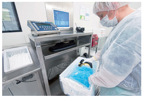 图 2 一名员工正在根据客户的要求,为生产的塑料部件单独进行包装,确保符合最高的清洁度标准,并将它们放置在专用的洁净室袋中