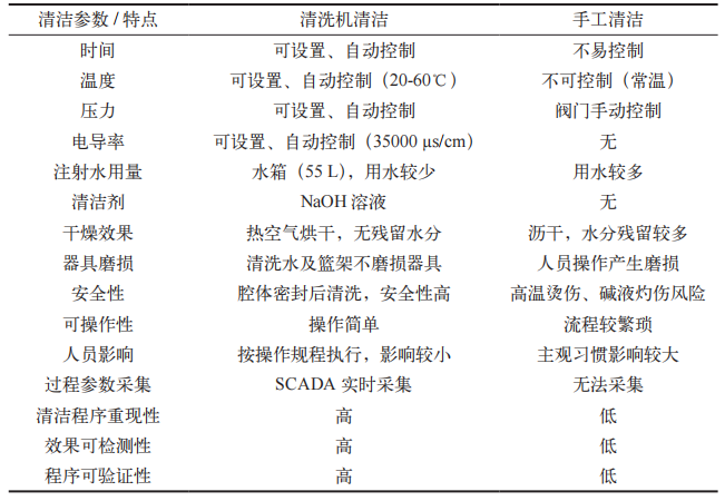 表 5 清洗机清洁与手工清洁特点