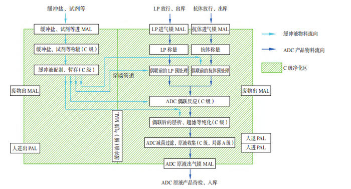 图 1 ADC 偶联车间生产工艺流程示意图