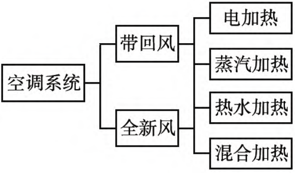 空调换热盘管根据加热介质,一般分为电加热、蒸汽加热、热水加热、混合加热 4 种加热方式。空调换热盘管的加热方式如图 4 所示。