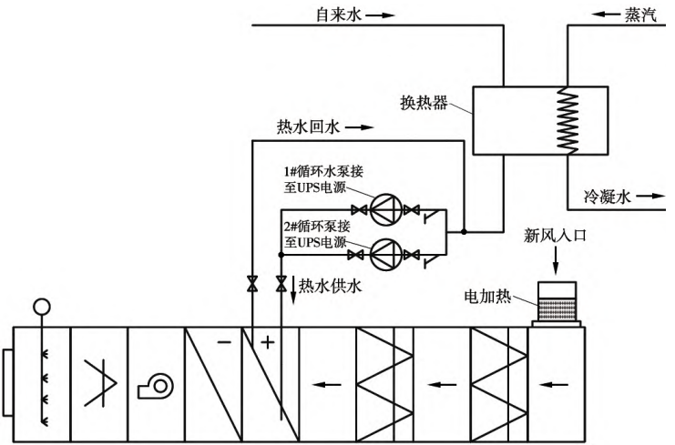 (1)对于新风盘管的加热介质为蒸汽或热水,应在新风盘管前端配置电加热作为预热保护。