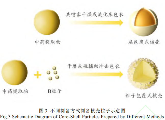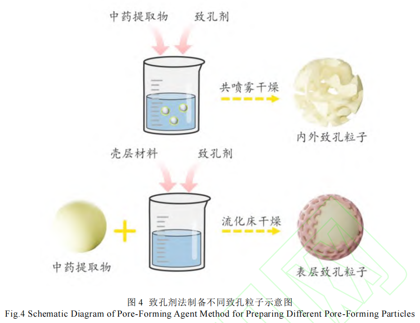 虽然核壳粒子可以改善中药粉末的流动性和压实性,但它也具有延长片剂的崩解时限的缺点。而多孔结构恰好可以增加药物提取粉末的压实性,缩短片剂的崩解时限。多孔核壳粒子是粒子设计技术的创新成果,结合了核壳结构和多孔结构的优势,是 DC-TCMP 领域的前沿研究方向。