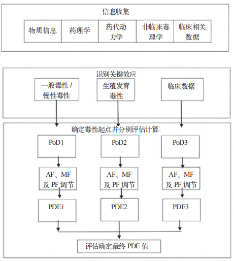 PDE 报告至少包含以下内容:(1)物质一般信息:化学性质、化合物名称、CAS 号、相关理论数据等;(2)化合物的药理作用机制(MOA)及适应症;(3)非临床数据:药理学和安全药理学数据、药物动力学和代谢、毒理数据、单剂量毒性、重复给药毒性、基因毒性、致癌性、发育和生殖毒性、局部耐受 /(皮肤)致敏;(4)人类的数据:人的治疗剂量(所有适应症、途径和患者人群,包括使用的易感人群、最低药理活性剂量)和 / 或临床试验数据、药物代动力学和药物 - 药物相互作用、临床试验 / 治疗使用中的不良反应,包括禁忌症和注意事项、妊娠和哺乳期资料;(5)PDE/ADE 详细计算过程;(6)PDE/ADE 详细选择过程和结论;(7)参考文献和参与评估的专家列表。