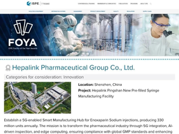 在近日于美国圣地亚哥举办的2026“未来设施大会”上,国际制药工程学会(ISPE)正式公布2026“年度设施奖”(Facility of the Year Awards,FOYA)入围名单,海普瑞药业凭借坪山新建预灌封制剂智造项目成功入选,是本届入围的全球16强中唯一的中国企业,与赛诺菲、阿斯利康、拜耳、强生、默克等国际制药巨头共同跻身榜单,角逐这一被誉为“医药设施奥斯卡”的全球医药工程领域最具影响力奖项。
