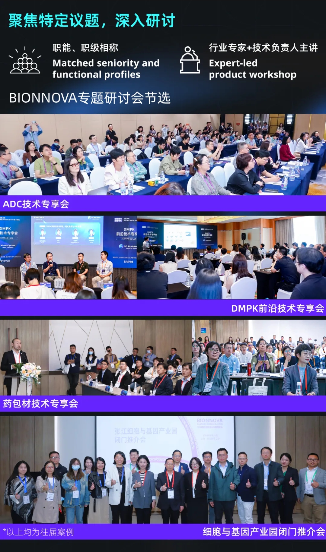 BIONNOVA围绕具体议题,联合具备相关实践经验的企业或研究机构,策划并组织定向专题研讨会。每一场研讨均聚焦精准方向,例如ADC、DMPK、药包材、In vivo CAR-T、BD合作、CMC技术等产业发展中的关键议题,以合作企业或机构的实践经验为核心,确保内容紧贴产业需求。